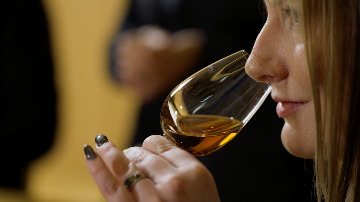 Light a sprig of rosemary and place it on a heatproof surface putting a Collins glass, upside down, over it. Allow the smoke from the rosemary to swirl around the glass to scent it.